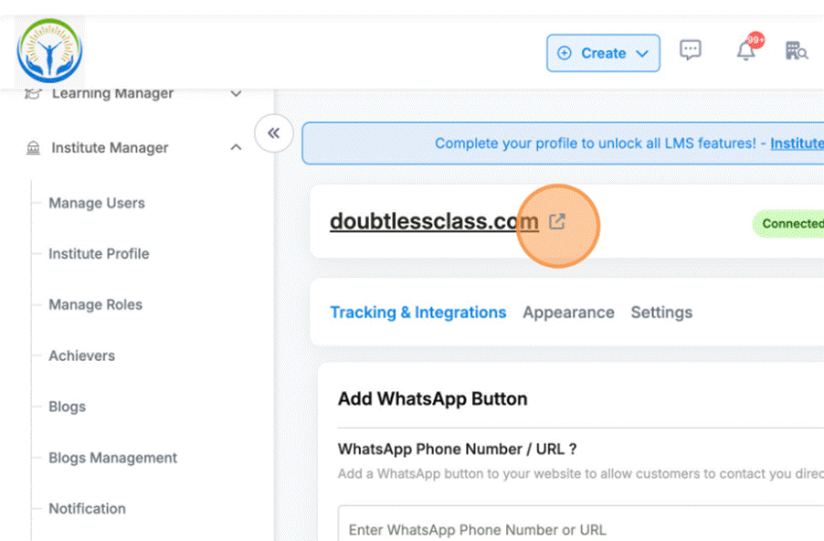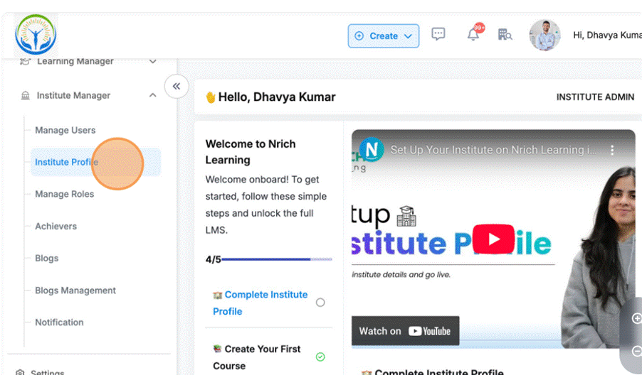 - Navigate to Institute manager -> Institute profile