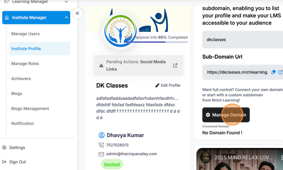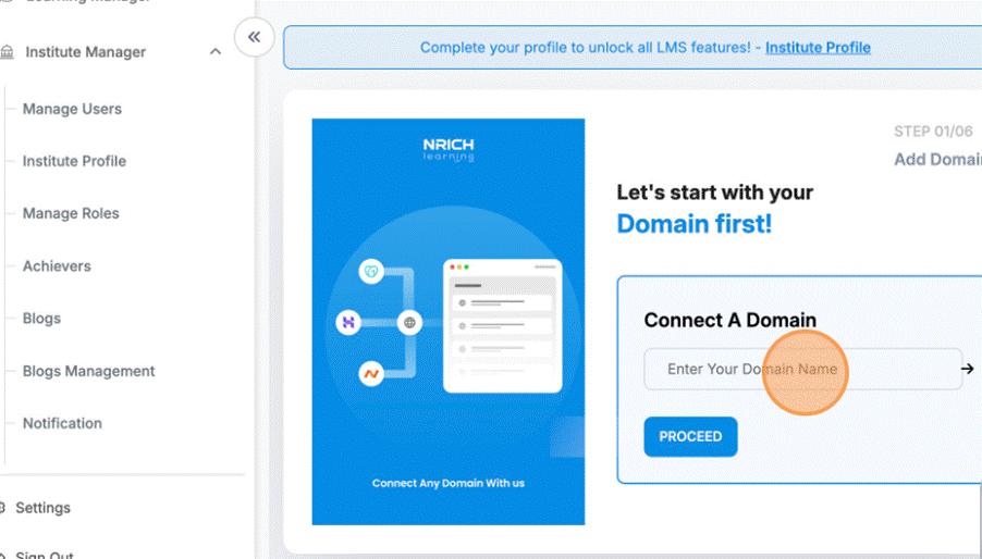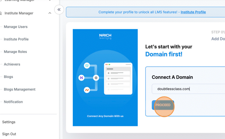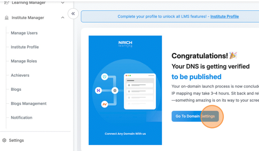 If you want your Nrich Learning site accessible via a custom URL, here’s how to add and configure a domain.