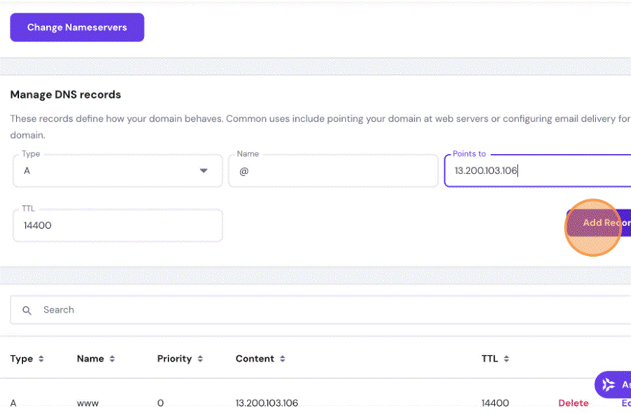 Navigate to platform where your Domain is managing. For example Hostinger. Click this text field.