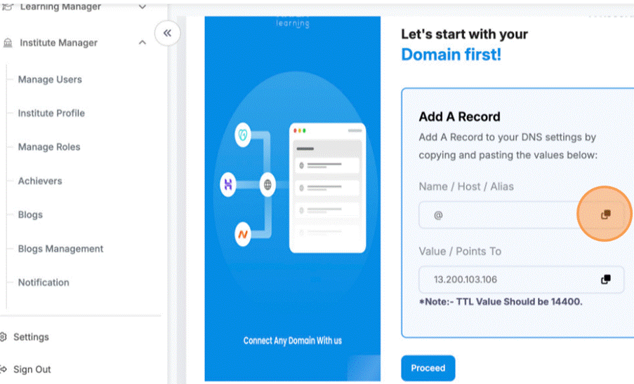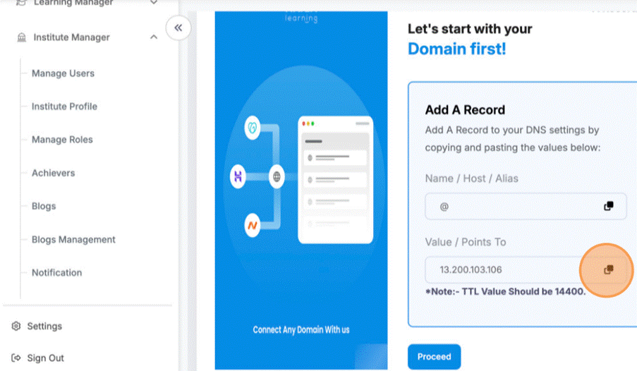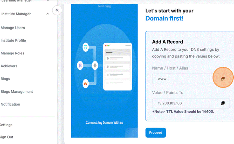 - Click here to copy these field data and paste on platform where your domain is managed.