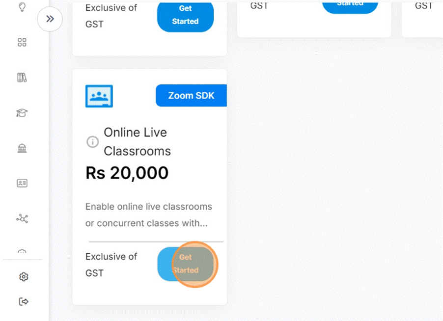Access your Nrich dashboard and navigate to Settings or Features / Add-Ons. - Locate “Online Live Classroom” Option